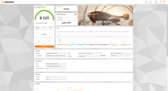 3DMark Portal Royal光追测试 作为测试的最后一环影驰 GeForce RTX 4060 Ti 8GB 星曜 OC的分数也是非常的稳定,测试分数为8125。