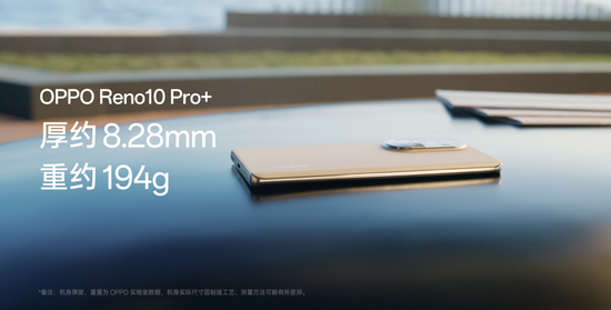 在外观工业设计上,OPPO Reno10系列打破了“潜望不轻薄,轻薄没潜望”的行业共识,OPPO Reno10 Pro+在搭载大底潜望长焦的同时,整机的厚度仅为8.28mm,重量也只有194g。而如此轻薄的机身,得益于OPPO对移动光学结构的再次创新,通过对玻璃棱镜、光学镜片、对焦马达进行精密的特殊定制,OPPO Reno10 Pro+将潜望式模组的厚度降低了0.96mm,实现了潜望长焦和轻薄机身的全面兼顾。