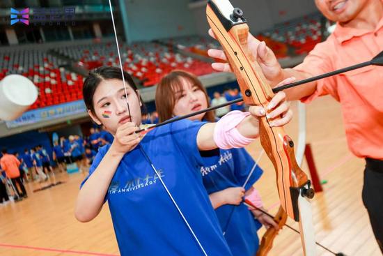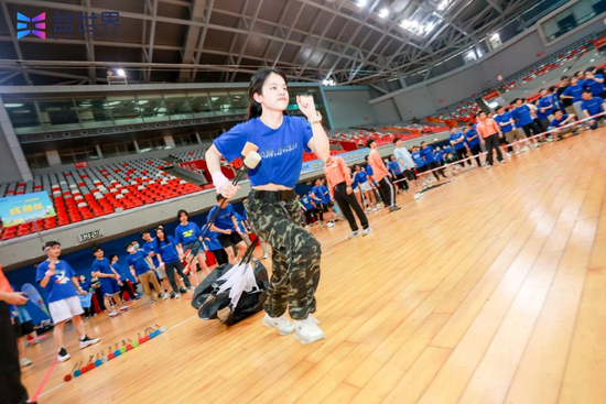 以不断追求极致、高效的专业精神,穿戴好阻力伞,一路狂奔。相互配合,拉弓射箭,正中红心~