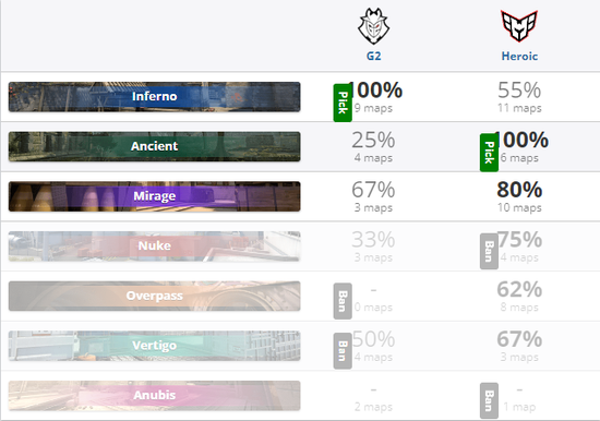来到下半场,G2集合先出中路强打甜甜圈,冲烟被jabbi接住3人,Heroic获得赛点。没有放下雷包的G2也只能起手枪,沙鹰抽奖获得人数优势翻盘成功,但Heroic没有给G2再进一步的机会16-4终结了比赛。