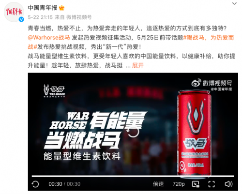 新一代年轻人,很燃!日前,中国青年报社联合战马能量型维生素饮料发起热爱接力挑战活动,号召年轻人展示出自己的梦想。活动引来网友广泛参与,战马成功挑战“最多人参与的线上喝饮品视频接龙”吉尼斯世界纪录™荣誉,展示新一代年轻人为热爱而战的风采。更受年轻人喜欢的战马能量型维生素饮料,以健康补给,助你提升能量!