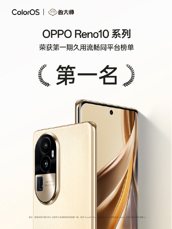 在最新发布的《鲁大师久用流畅测试报告第一期》中,OPPO Reno10系列荣获鲁大师第一期久用流畅同平台榜单第一名,流畅度表现获得了权威平台的高度认可。在鲁大师总榜排名中,Reno10 Pro+获得了14054.92分的成绩,流畅度评分表现甚至超越部分骁龙8 Gen2机型,因此稳定流畅也是这款手机的一大特色。