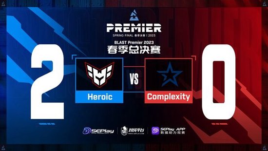 BLAST春季总决赛,Heroic首轮遭遇Complexity。面对没有Hallzerk的coL,Heroic分别在Inferno和Nuke上碾压对手完全没有给机会轻松拿到首胜,接下来他们将面对FaZe和Astralis的胜者。