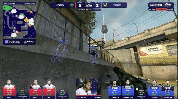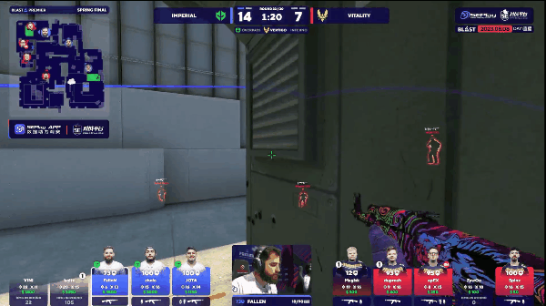 图一来到了死亡游乐园,小蜜蜂率先防守,手枪局chelo三杀帮助队伍先下一城,来到长枪局,ZywOo同样用一波出色的三杀帮助队伍拿到首分,但紧接着土匪出色的A区突破补枪击溃了CT的经济,继续扩大着领先优势,新科Major冠军显然没有适应巴西队伍的进攻节奏,屡屡被土匪打出连杀,前期小蜜蜂的前顶难以拿到优势,进入雷区后的枪法对抗今天也落于下风,整个上半场CT的表现异常挣扎,仅仅拿到三分,Imperial 12-3结束上半场。