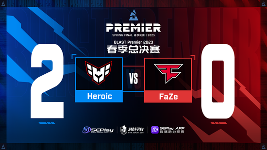 在今天上午进行的BLAST Premier春季决赛B组胜者组决赛中,FaZe战队0-2(Nuke 16-19, Inferno 10-16)不敌 Heroic战队,不过好在FaZe已经拿到了1/4决赛的参赛资格,他们仍有希望复仇Heroic。而Heroic则成功晋级到了半决赛之中。晋级半决赛的Heroic现在舒舒服服的等待着Complexity和Imperial两支1/4决赛的队伍决出胜者。这一切和上周的IEM 达拉斯站可以说是惊人的相似,可惜达拉斯的时候Heroic后来输给了MOUZ战队。而FaZe战队则得从1/4决赛开始战斗,他们将会面对Vitality,获胜的队伍可以对阵G2。