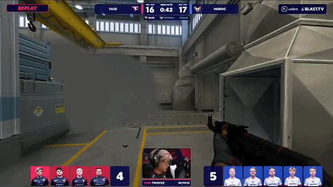 双方的第一张地图是FaZe主动选择的Nuke,和Major的那场BO3一致。上半场FaZe作为进攻方率先拿下手枪局和之后的经济局,3-0开了个好头。长枪局里Heroic连拿3分将比分追平。