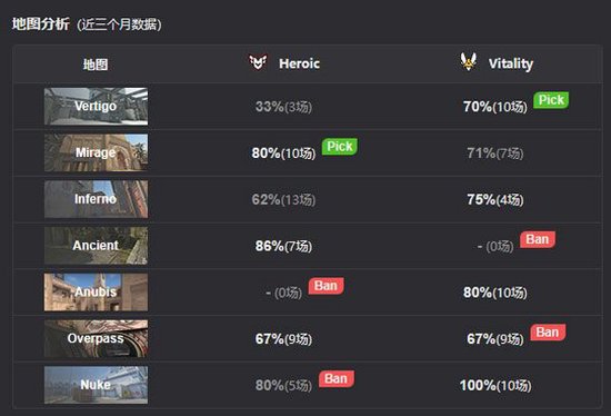 图一是Vitality选择的Vertigo,先作进攻方的Heroic依靠补枪顺利一波进攻A区,赢下手枪局,稳稳得到前三分。第四局,一波进攻A区的Heroic没能清空A小,被apEX完成一波四杀,Vitality拿到第一分,并连续得分。