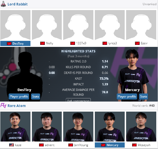 6月13日 20:00 Lord Rabbit(排名第3) vs RA