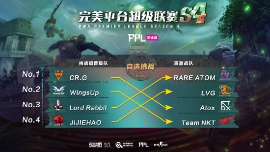 PPL S4(完美平台超级联赛第4赛季)最高组别——职业组今日正式打响!从挑战组阶段杀出重围的四支队伍将根据排名先后依次挑选对手,一一挑战四支赛事直邀职业战队。是以下克上还是强者恒强?这一切都有待赛场给出答案!