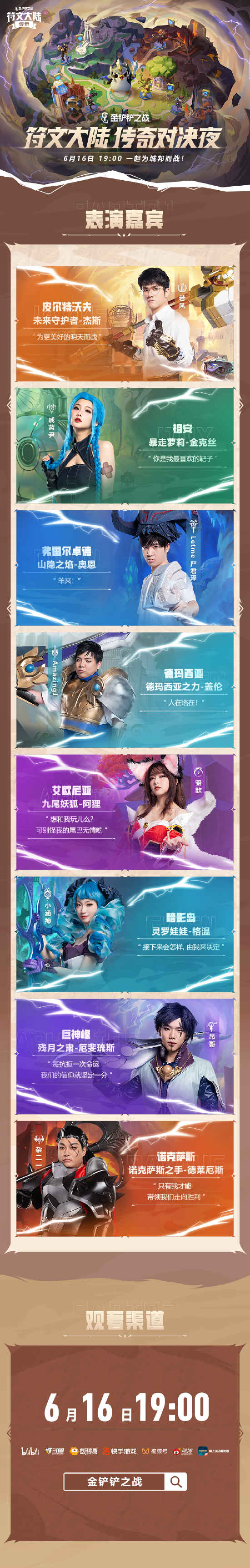 除此之外,金铲铲之战还为弈士们准备了新赛季特别节目“符文大陆传奇对决夜”,若风、小戚、骆歆、Letme、AmazingJ、吊哥、小涵神、杂二一等多位人气大神将分别代表各自城邦展开激烈对战,大家还在纠结新赛季玩什么阵容吗?6月16日19点,锁定金铲铲之战官方直播间,快来一起来看看新赛季的上分思路吧。