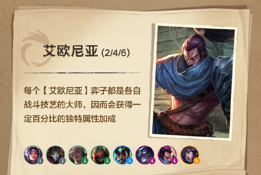 艾欧尼亚:每个艾欧尼亚弈子都是各自战斗技艺的大师,因此会获得特定的属性加成。每经过4秒,艾欧尼亚弈子会进入灵体状态,获得30法力值并使属性加成翻倍。