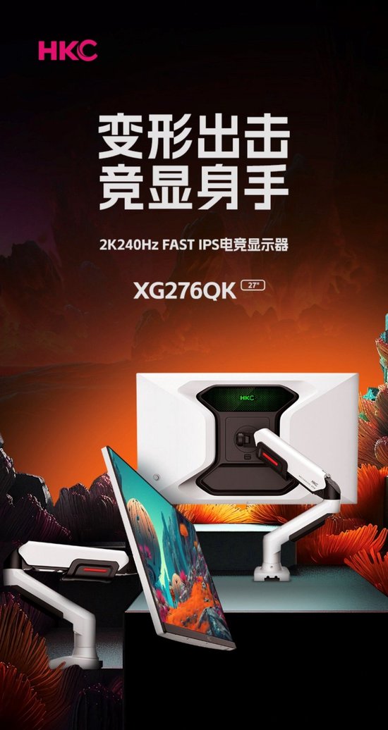 一、 HKC XG276QK——业界首款2K240Hz原装智慧机械臂电竞显示器