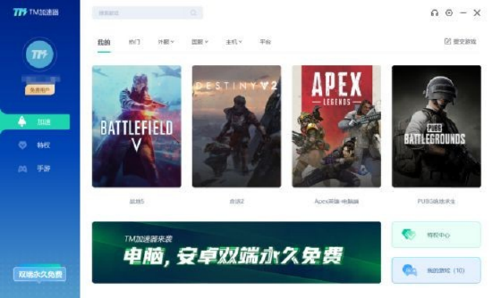 TM加速器是真正的永久免费游戏加速器,不信你就试试吧!