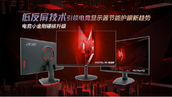宏碁暗影骑士家族推出首款低反屏显示器XV272U RV,从硬件上突破了传统屏幕受环境照明和反射影响问题,为电竞小金刚再叠新buff,成为近期的硬件热点。本次上新共发布两款升级版的小金刚——拥有低反屏的小金刚Pro--XV272U RV和青春版VG270U P3,均来自爆款频出的宏碁暗影骑士系列,此次升级后的小金刚在硬件、色彩、外观等方面更加优秀,成为游戏党的新宠儿。