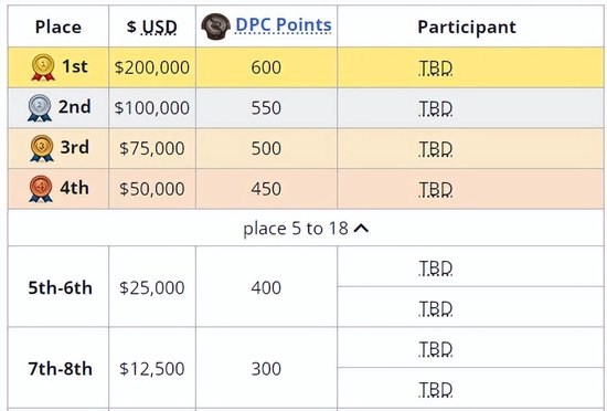 本次Major的总奖金依然为50万美元,但总积分达到了3500分,其中冠军将获得20万美元的奖金与600点积分。