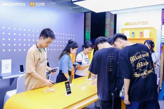 在活动现场,联发科展出了来自主流品牌的多款搭载天玑移动芯片的智能手机,让用户可以现场感受先进移动端游戏技术赋能的“神装”体验。
