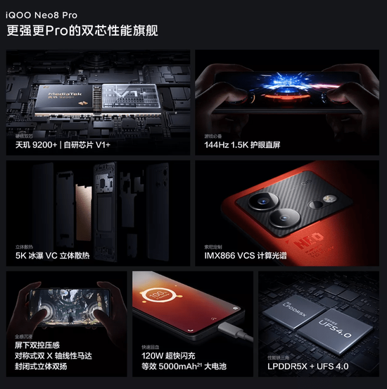 与此同时,iQOO Neo8 Pro配置满血版LPDDR5X内存和UFS4.0闪存,至高支持16GB和1TB超大组合,造就顶配性能铁三角,让日常应用快速响应和流畅高帧游戏体验兼得。