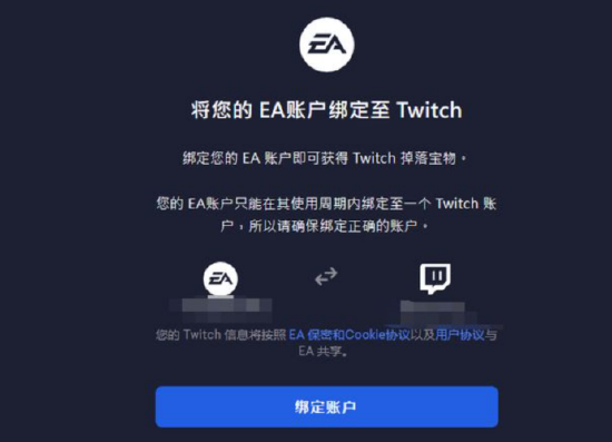 完成Twitch登录和授权后,输入您的EA账户信息,并按照页面提示完成信息填写。