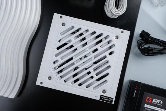 拆开后,首先看到的为电源风扇,电源散热风扇中贴示了耕升的经典标志,风扇尺寸为120mm,轴承上使用的是FDB轴承,电源的散热与寿命将得到更好的保证。同时风扇配备智能启停功能,在低负载、低温环境下风扇将智能停转,这令玩家在使用中有效降低噪音,带来极为舒适的体验。