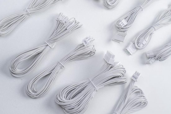 电源附赠的电源线材,由高端压纹线材所制造,质地柔软且利于走线。其中包括1根专门对接12VHPWR接口的电源线,2根正常的ATX12V/EPS12V 接口线,3根PCI-E接口线,一个四接口的SATA接口线。