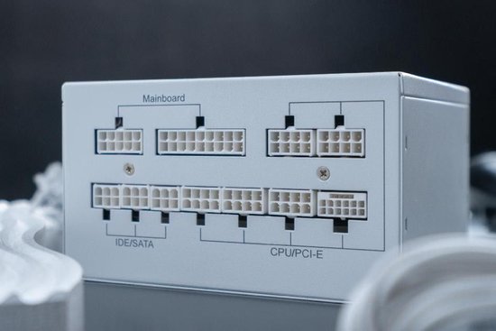耕升 星极破冰 1000尾部为各式各样输出接口,其中主板供电接口一个,CPU供电接口两个,数个SATA 接口与6个符合PCIe 规范接口,其中还拥有一个原生支持PCIe5.0规范的12VHPWR接口,可为支持PCIe 5.0的显卡提供高达600W的功耗。全模组设计为玩家们于搭配上,减少了多余线材的占用空间。