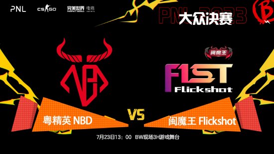 2023PNL完美世界CS:GO全国联赛春季赛大众决赛,将在BW 3H馆的游戏舞台落地。对阵双方为来自广东的NBD战队和来自福建的Flickshot战队,闽粤大战一触即发,PNL春季赛的大众冠军究竟花落谁家,我们BW赛场见!赛前还将有观众开箱互动环节,欢迎大家前来围观欧皇的诞生。
