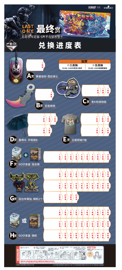 完美世界电竞展台特别推出BW之CS:GO限定完美赏活动,奖品丰富,包括赛睿鼠标、巨型爪子刀抱枕、老K地毯、开局按B直柄伞等物品。体验完展台活动之后欢迎来逛一逛哦~