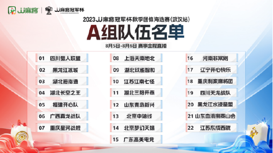秋季团体海选赛共设武汉、成都两站。武汉站已于日前结束报名,将于8月5日-8月6日正式开赛。错过武汉站报名的朋友也不要着急,成都站报名仍在火热进行中,7月13日-7月27日下载JJ斗地主APP即可报名参赛,争夺12个秋季团体赛正赛资格。成都站正式比赛时间为8月12日-8月13日,比赛项目为血流麻将团体赛,参赛地点为成都金牛逸衡酒店。