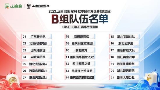 武汉站参赛队伍名单最终确定为43支,令人惊喜的是,除了夜游神、起飞、云端360等JJ麻将冠军杯老选手,JJ斗地主冠军杯超人气明星选手高源、掘开、人帅气质佳、秀岩、海底等也将跨界加盟,来到麻将赛场大展拳脚。