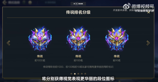 S10中,峡谷之巅的积分将调整为累计显示,而每个段位的分数要求不变。传说段位召唤师的个人资料和名片上, 新增显示峡谷之巅积分数值。传说段位前1000、前100、前10的召唤师,将分别获得视觉效果更加华丽酷炫的段位图标,对应的头像框和载入框。