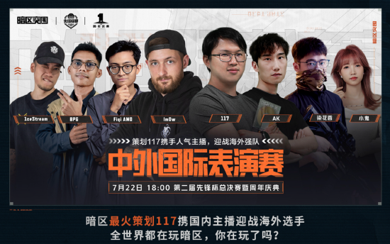 紧接着,决赛开始前策划117&AK将挂帅亲征,携手国内知名主播VS海外明星玩家。上演一场充满趣味的中外国际表演赛,场面欢乐满满、看点十足,也不容错过哦!