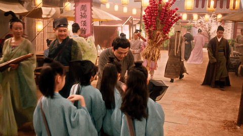慢慢地,景色从金色丰收的农田,来到烟火升起的集市。她欣然踏入人间烟火之中,与小城街道里的商贾、来往百姓相遇,感悟时光静美。