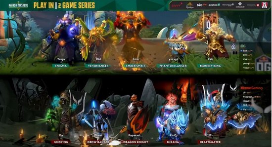 OG天辉,XG夜魇。选人方面,OG前两手选择了谜团加剧毒,XG选择了尸王加小黑,三四手OG选择了火猫加幻影长矛手,XG选择了龙骑士加白虎,最后一手OG选择了大圣,XG选择了兽王。