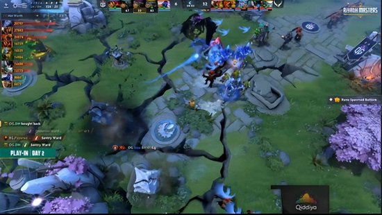 三十一分钟下路双方再次遭遇,XG依靠玛尔斯和滚滚再次打出精彩先手秒掉潮汐和谜团,追击战蓝猫剑圣也阵亡,XG直逼基地,OG交出三核心买活留下小鱼人击杀。