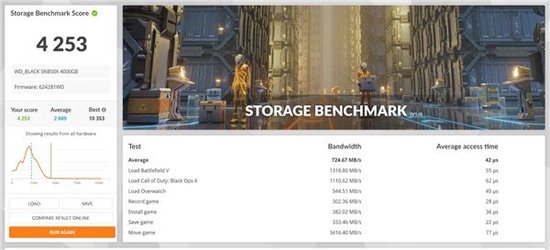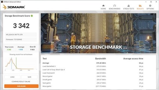 根据媒体实测,WD_BLACK SN770的最高顺序读写速度分别可达5280.02MB/s、4936.85MB/s,小幅超越了其官标技术规格,它的最高随机读写性能也分别达到650K IOPS以上、825K IOPS以上,同样超过了官方规格。此外这款SSD的3DMark存储性能可达3300分以上,比不少分数不到3000的主流PCIe 4.0 SSD要强不少,意味着WD_BLACK SN770也可以快速地启动各类游戏。