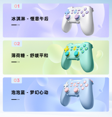 更适合游戏玩家的夏日派对,没什么烦恼是一场游戏放松不了的!北通开启多巴胺情绪治愈之旅,正式揭秘三款蝙蝠4游戏手柄新配色,旨在希望玩家放下焦虑,找回庸碌公式中小小的浪漫主义,更加松弛地面对闪耀的夏天。
