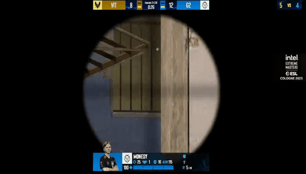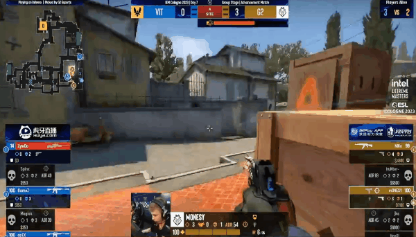下半场攻防转换,来到进攻方的G2虽然丢掉了手枪局,但是马上在之后的刚枪局抓住了Vitality的破绽成功翻盘。比赛来到第23回合,开局G2先做常规默认,假做A坡控制之后转向B区,并送尼公子一人在电梯房摸中路准备夹B。Vitality在B区的防守十分完备,G2的第一时间迅速提速被烟拖住马上选择转点,但是同时中路走单的尼公子已经被前压的魔男击毙。G2众人冲到A坡下又击毙了抄后路的ct马上再次转B,但是火仔击毙了已经踩上B坡的呼吸,剩下的三人也因为时间原因打的十分慌乱,只能拱手让出这一分。