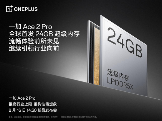 8 月 10 日,一加正式宣布,一加 Ace 2 Pro 将搭载至高 24GB 超级内存,结合独家自研「内存基因重组」技术,进一步刷新安卓流畅体验认知。一加 Ace 2 Pro 是行业首款实现大规模量产的 24GB LPDDR5X 内存手机,一加与行业领先的闪存方案品牌海力士深度合作,双方共同攻克了 24GB LPDDR5X 颗粒大规模量产的行业难题,为性能手机内存的行业突破树立了全新的里程碑。一加中国区总裁李杰表示,“我们将联手海力士,将 24GB 开放给行业,共同探索更多内存技术落地的可能,促进行业性能全面升级,为用户带来更流畅、更强大的性能体验。”