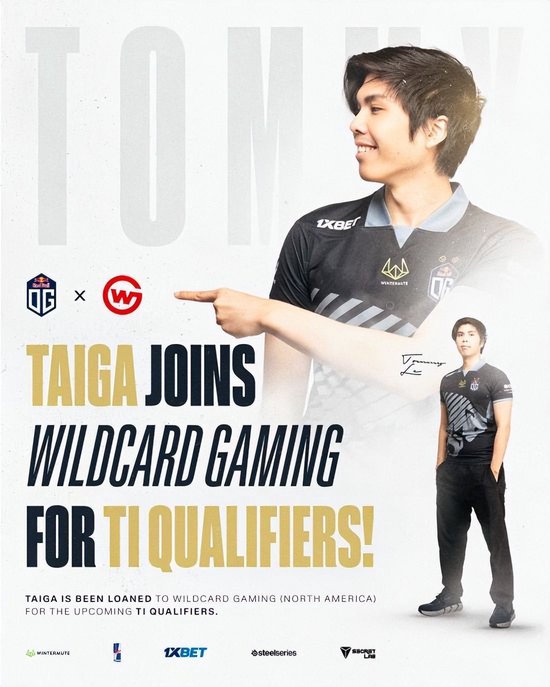 此前多方爆料Taiga已经加入Wildcard并开始训练一事终于尘埃落定。9日晚间,OG宣布Taiga租借加入北美战队Wildcard参加TI12预选赛并祝愿双方西雅图再会。