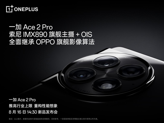 8 月 14 日,一加正式宣布新机一加 Ace 2 Pro 将载索尼 IMX890 旗舰主摄,并且支持 OIS 光学防抖。同时,一加 Ace 2 Pro全面继承 OPPO 旗舰影像核心算法和影像引擎,让旗舰影像能力更进一步。一加中国区总裁李杰表示:“拍照一定是用户使用一部手机最频繁和最重要用到的功能之一,所以在主打性能的旗舰上,一加也坚决搭载旗舰级的影像配置。”