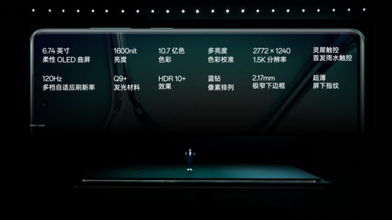这块屏幕拥有 120Hz 可变刷新率,1.5K 超视网膜分辨率,1600 尼特的超高亮度,为用户带来清晰、通透、省电的绝佳体验。得益于一加与京东方的联合优化,全新京东方 Q9+ 发光材质在用户较为关心的暗光下显示效果、亮度均匀性有显著提升。夜晚、暗光下显示更自然、更真实;在色偏、拖影等问题上也有了很大的改善,屏幕显示更准确、效果更出色。