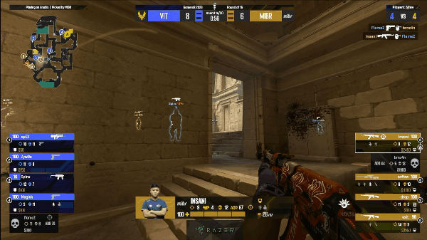 图一来到了阿努比斯,MIBR率先进攻,赢下手枪局后土匪连取三分,来到第一个长枪局,flameZ拿到三杀,帮助队伍打开局面,后续土匪依然难以在长枪局有所作为,虽然insani和exit的表现可圈可点,但是小蜜蜂合理的补防、防守联动让自己始终处于上风,没有个人英雄主义的表演,每个人各司其职就赢下了回合,好在土匪及时调整,新援drop打出了不俗的表现,上半场最终回合,insani双杀突破B区,比分暂定在8-7,小蜜蜂领先。