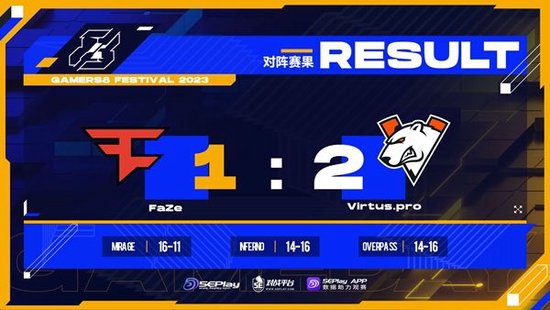FaZe在进攻方的发挥十分出色,个人能力的发挥打的VP有些招架不住。VP在自己的选图的防守方被FaZe的进攻牵着鼻子走,很快就丢掉了赛点。拿下赛点的FaZe全面爆发,轻松以16-11的比分收下了图一的胜利。
