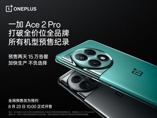 强大产品力带来市场的热烈反馈,一加 Ace 2 Pro 预售仅 26 小时便打破 2023 年全年全价位段、全品牌所有机型的预售纪录,15 万台现已告罄。因需求已经远超产能,一加已将一加 Ace 2 Pro 全网预售改为预约,并紧急加单,加快生产。