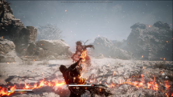 立棍的重攻击招式“猴哥升旗”,劈棍的灵活攻击、戳棍的大范围打击。棍势与棍法组合出的无限玩法产生了恰到好处的爽度,也同样构成了魂系游戏的“门槛”。关于如何打出攒出棍势、攻如疾风骤雨、闪如魑魅蛇蝎,是对玩家的考验同时也是一种极致的享受。