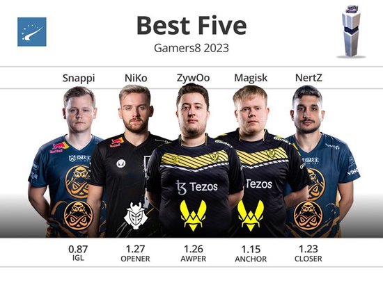 以上就是石油杯黄金五人了。NiKo和NertZ可能略有冲突,因为两人都是激进步枪手。但整体来看这套阵容依旧不错,Magisk和Snappi是CT主点人,ZywOo和另外两名步枪手的组合会无往不利。