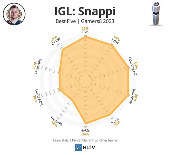 Snappi的到来让黄金五人中出现了两名ENCE选手,这也是他本人第三次出现在黄金五人之中。