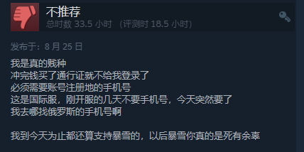 《守望先锋2》于8月25日凌晨发布全新更新补丁后,Steam玩家发现本作登陆需要进一步手机号码验证,部分Steam国区玩家无法验证登陆,使投入的时间精力和金钱成了无用功,不少玩家选择利用差评方式回应本次更新。