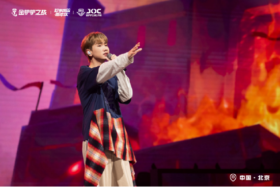 在庆典的上半场,汪苏泷首先用一首《剑魂》炒热气氛,这位身着黑衣的宝藏弈士自信踏步舞台中央,一股江湖气在词曲间弥漫整个现场,现场的全息屏随着副歌变幻一个又一个战场,为接下来的表演赛与JOC3总决赛增添了一份剑拔弩张的味道。