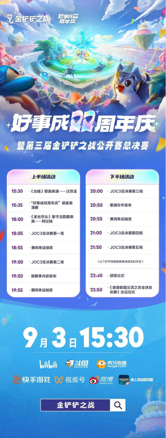 9月3日,《金铲铲之战》好事成双周年庆暨第三届金铲铲之战公开赛(JOC3)总决赛顺利落下帷幕。